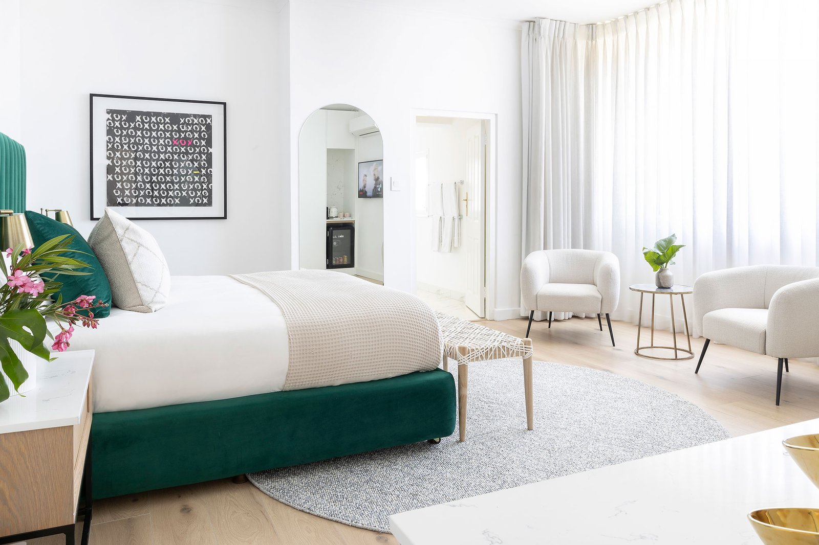 Spacious rooms overlooking colourful gardens and sparkling swimming pools. Each suite has an additional room for the children and one full bathroom, with separate bath and shower.
